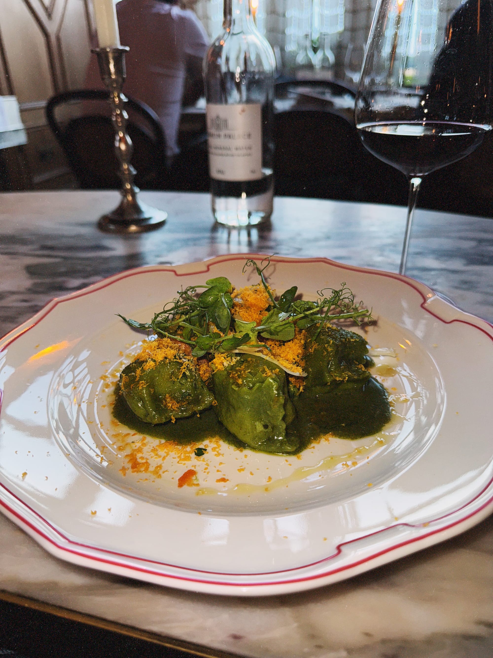 “They’re a combination of Fernet and Campari… he ordered them while you were in the bathroom,” the waiter offers somewhat apologetically.
